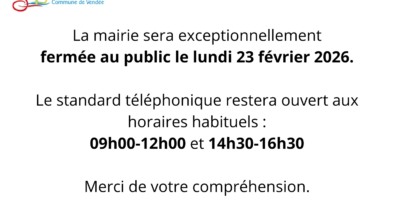 La mairie est fermée le samedi entre le 1er juillet et le 31 août.